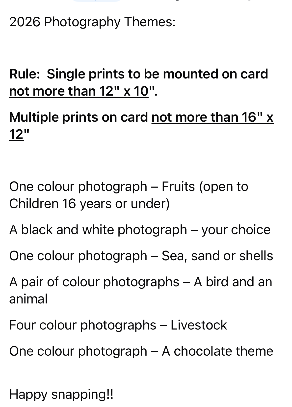 Congratulations to all the prize winners. We were delighted to see so many entries in all the classes. Thank you so much everyone, the judges were very impressed!