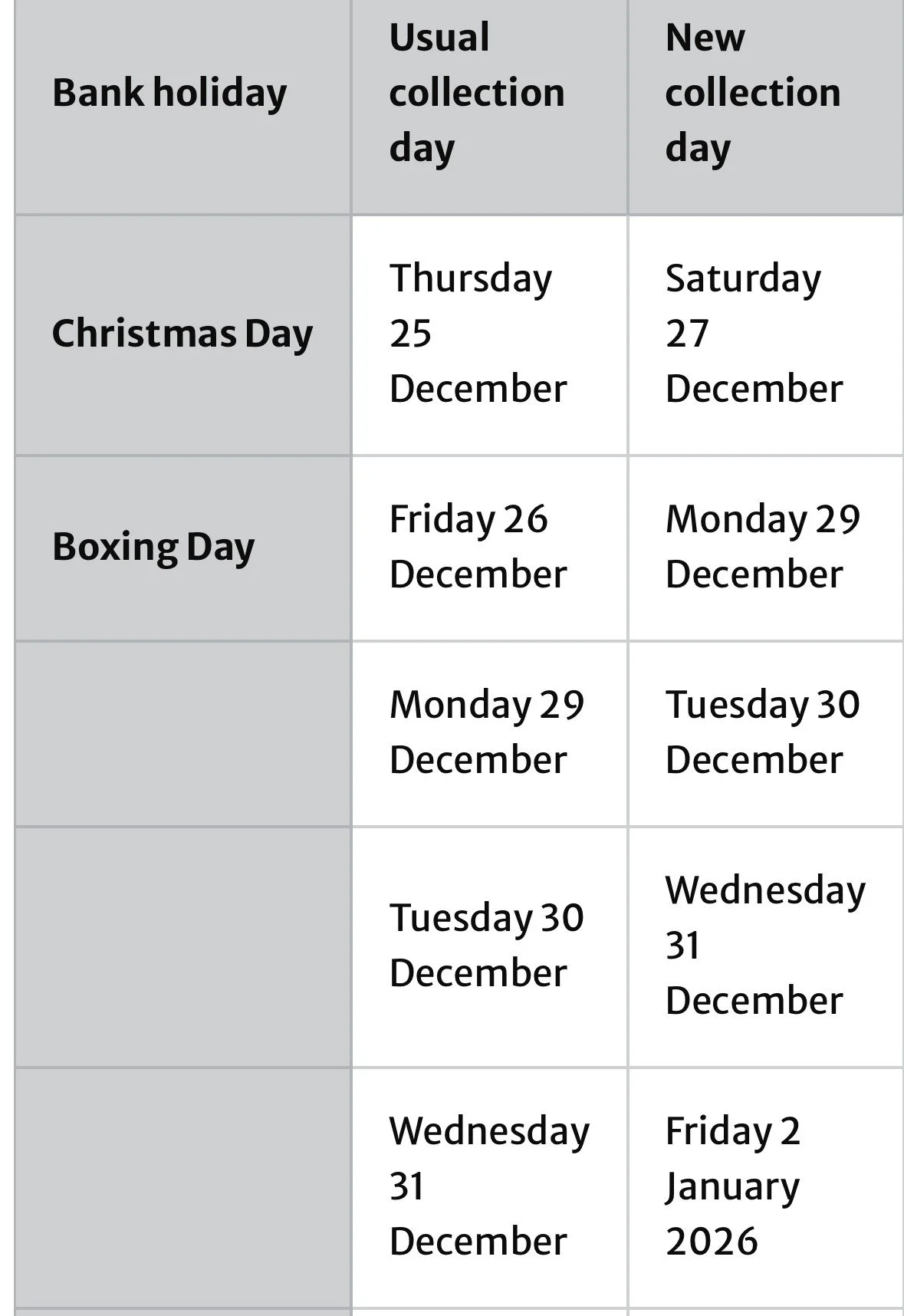 Christmas & New Year Refuse Collections 2 Dec Written By Elizabeth Montague Information from SHDC website Elizabeth Montague